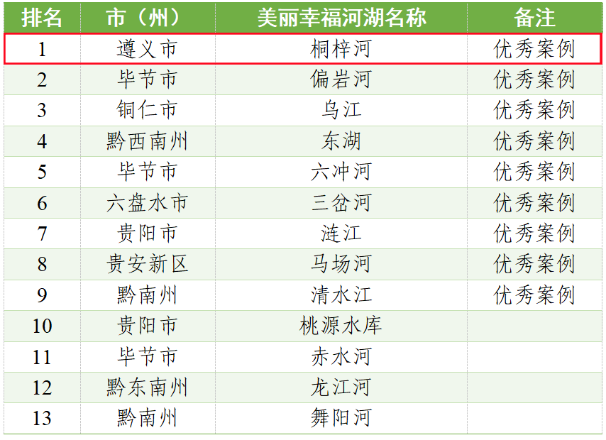 为深入贯彻落实习近平生态文明思想,按照国家关于推进美丽中国建设的决策部署以及省委、省政府有关工作要求,我们按照《贵州省美丽幸福河湖评定管理办法(试行)》开展了2025年度贵州省美丽幸福河湖评定工作。经专家审核和公开征求意见,遵义市桐梓河、毕节市偏岩河、铜仁市乌江等13条(个)河(湖)评分较高且获得公众认可。经研究,决定上述13条(个)河(湖)为2025年度贵州省美丽幸福河湖,其中遵义市桐梓河、毕节市偏岩河等9条(个)河(湖)为2025年度贵州省美丽幸福河湖优秀案例,现予以公布(名单见附件)。